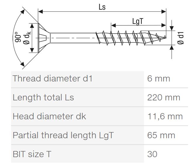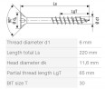 SPAX vrut 6x220/65 zápustná hlava TXS,W,4C MH, částečný závit