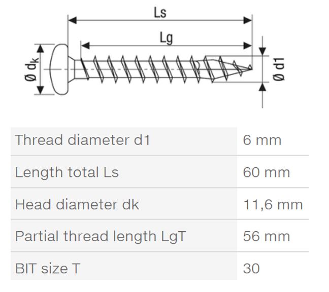 SPAX vrut 6x60 půlkulatá hlava TXS,W,4C,