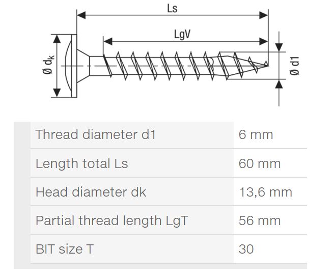 SPAX vrut 6x60 talířová hlava TXS, W, 4C, nerez A2
