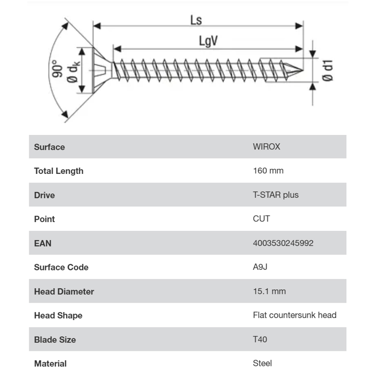 SPAX vrut 8x160 zápustná hlava TXS,W,4C MH, celozávit