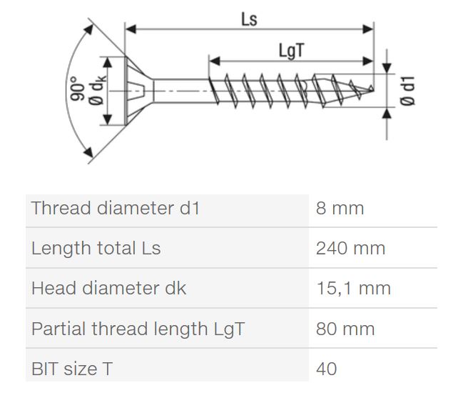 SPAX vrut 8x240/80mm zápustná hlava TXS,W,4C MH částečný závit
