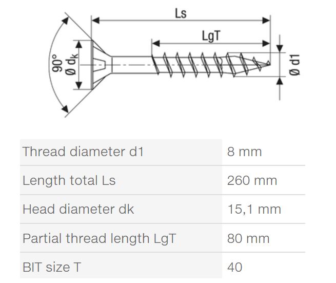 SPAX vrut 8x260/80mm zápustná hlava TXS,W,4C MH částečný závit