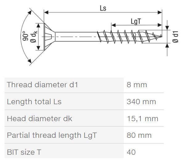 SPAX vrut 8x340/80 zápustná hlava TXS,W,4C MH, částečný závit