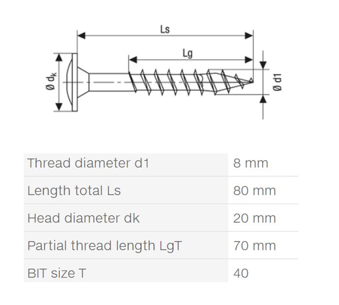 SPAX vrut 8x80mm talířová hlava TXS W 4C