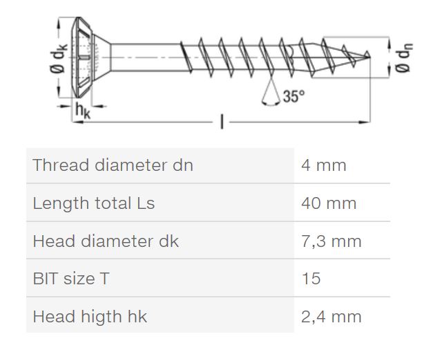 SPAX vrut FEX-H 4x40 zápustná hlava TXS,W A3J,4C MH, částečný závit