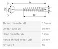 SPAX vrut M 3,5x50/35mm zápustná hlava TXS,W,C částečný závit