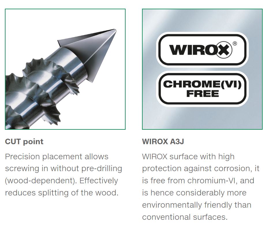 CUT špička s vlnitým závitem pro snadné zavrtání.