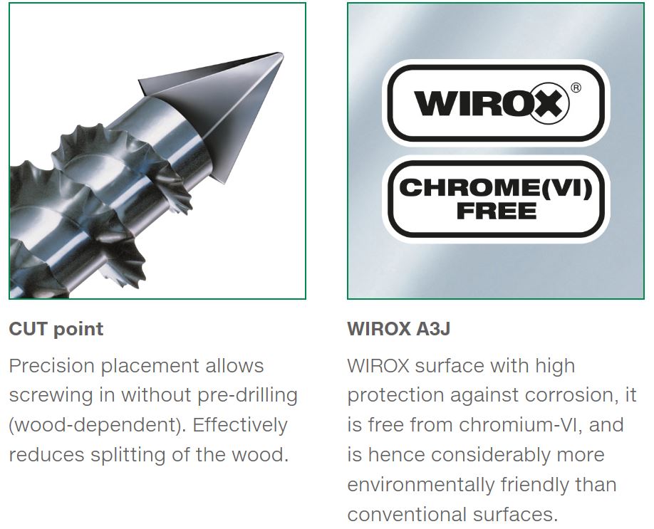 CUT špička s vlnitým závitem pro snadné zavrtání.