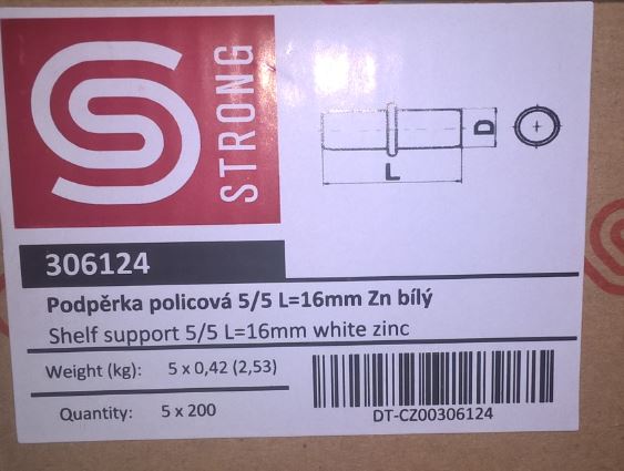 STRONG podpěra policová 5/5mm zinek bílý