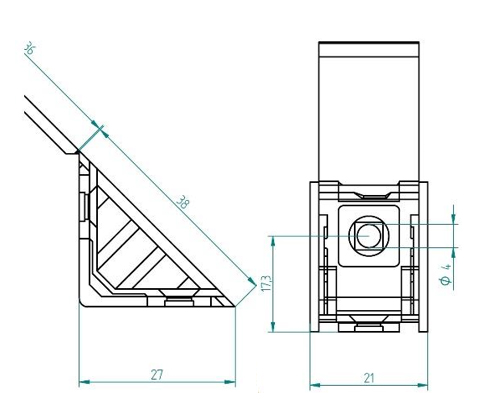 Celoplastový spojovací úhelník pro spojení kolmých desek.