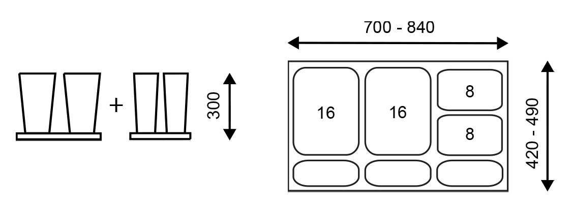 StrongBins sorter 2x16 + 2x8 l vložený do zásuvky 800 - 900 mm, antracit