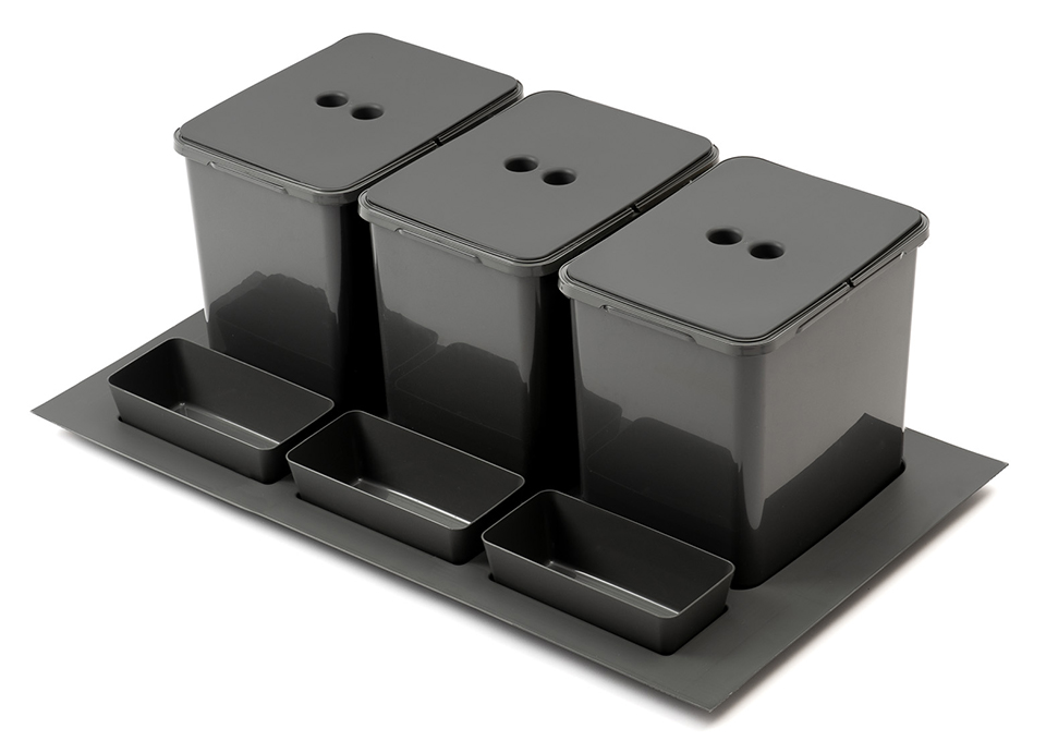 StrongBins sorter 3x16 l vložený do zásuvky 800 - 900 mm, antracit