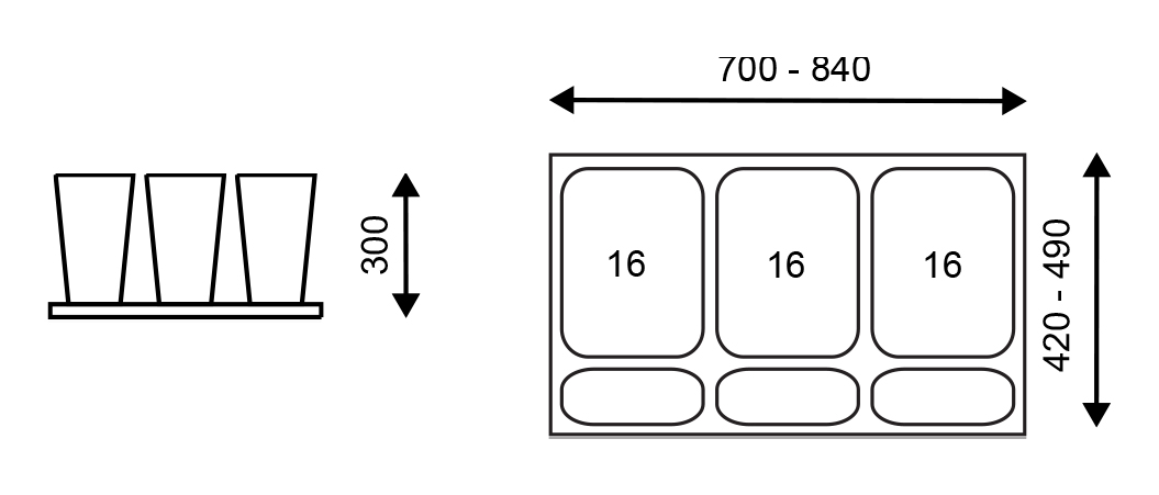 3 x nádoby s víky o objemu 3 x 16 l