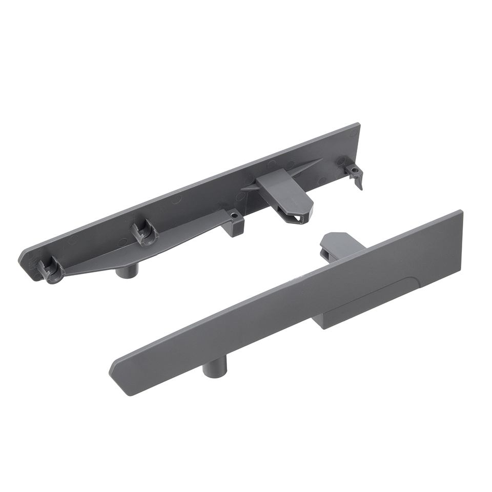 Držák čela pro vnitřní zásuvku, šedý (PVC). Pro zásuvku výšky 204mm s horním i středovým relingem.