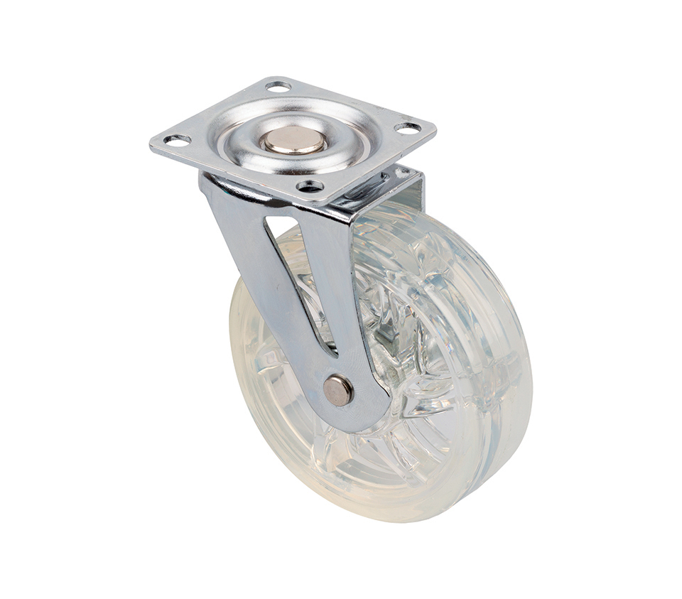 Otočné kolečko, bez brzdy, průměr kolečka 75 mm, barva : transparentní čirá. Statická nosnost 45kg