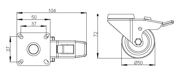 Kolečko otočné průměr 50 mm s brzdou, statická nosnost 30 kg