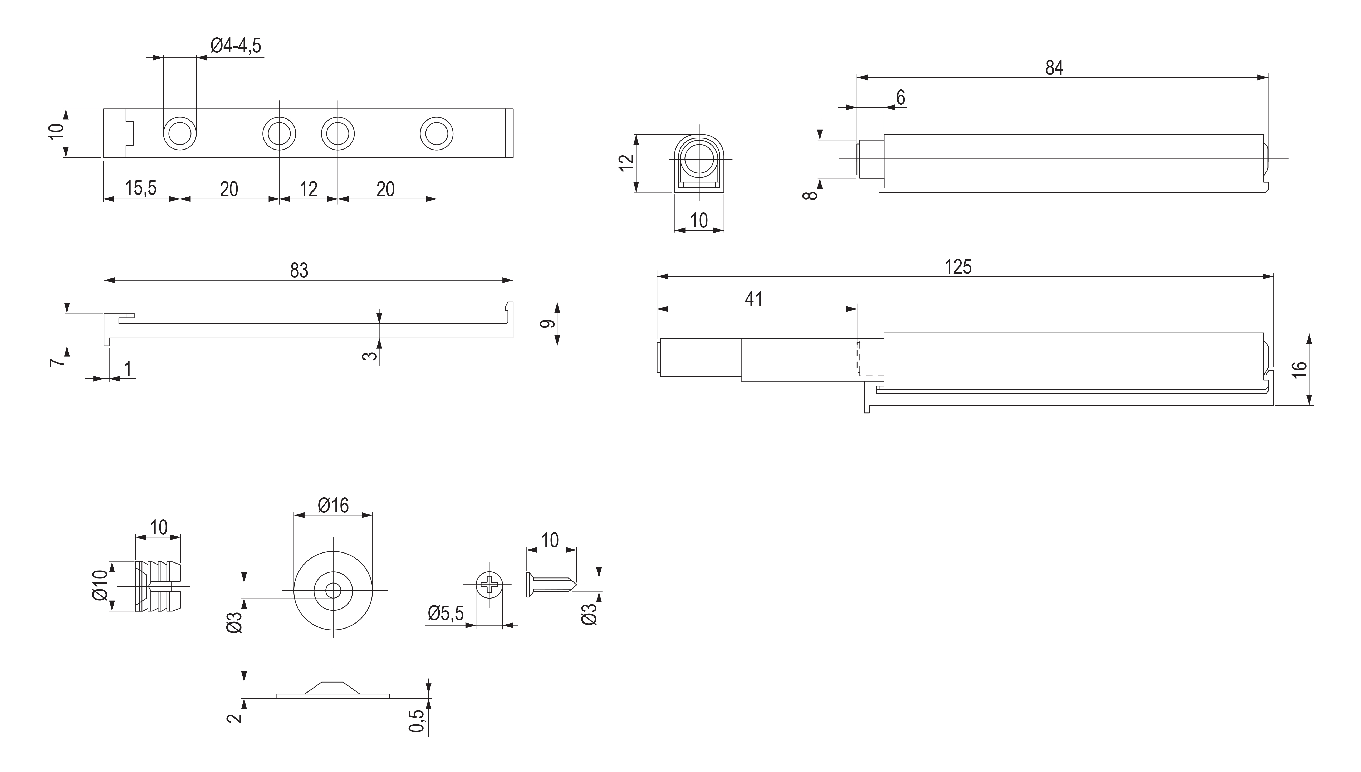 Mechanismus pro bezúchytkové otevirání dvířek s adaptérem pro našroubování dovnitř korpusu, s magnetem. Součásti balení je mechanismus, adaptér pro našroubávání do korpusu, protikus k magnetu k našroubování, vrut k našroubování protikusu na dvířka ahmoždinka 10mm pro našroubování protikusu do otvoru 10mm.