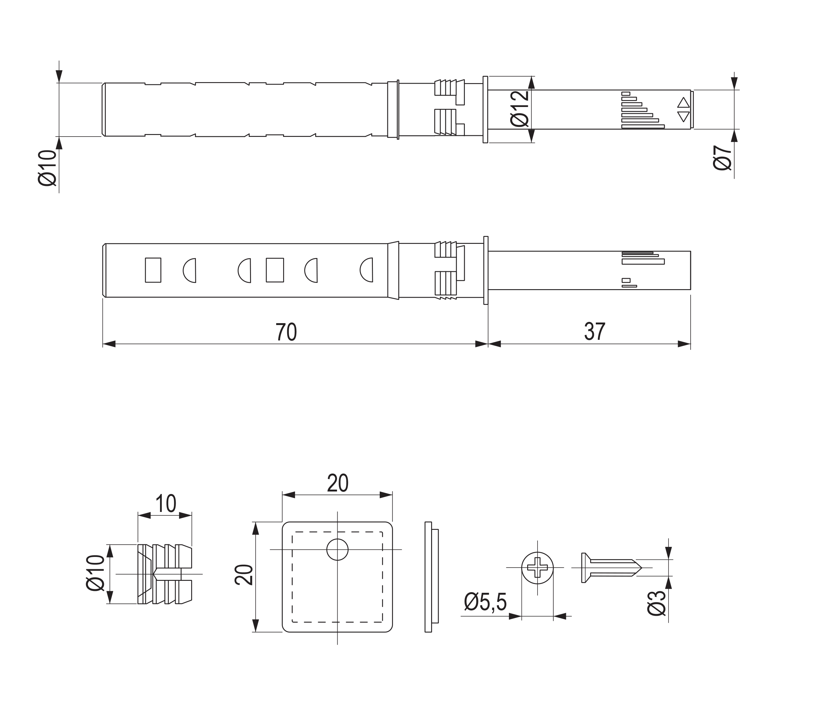 Mechanismus pro bezúchytkové otevirání dvířek k zavrtání do stěny korpusu, s magnetem. Součásti balení je mechanismus, protikus k magnetu k našroubování, vrut k našroubování protikusu na dvířka a hmoždinka pro našroubování protikusu do otvoru 10mm.