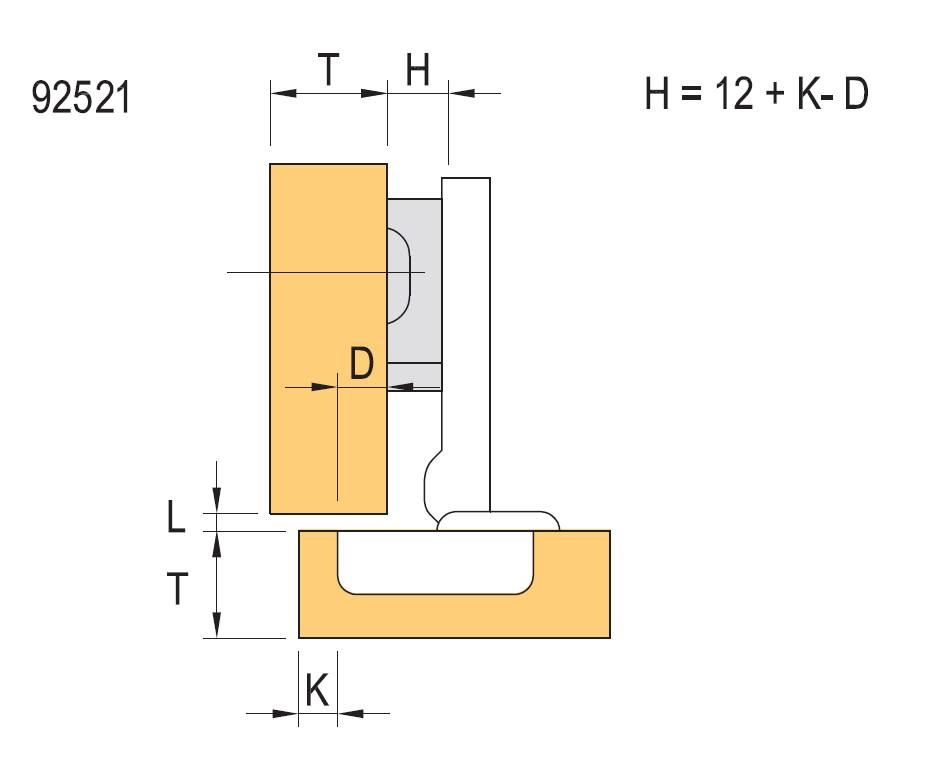 Závěs mini naložený na vrut + podložka Úhel otevření 95°