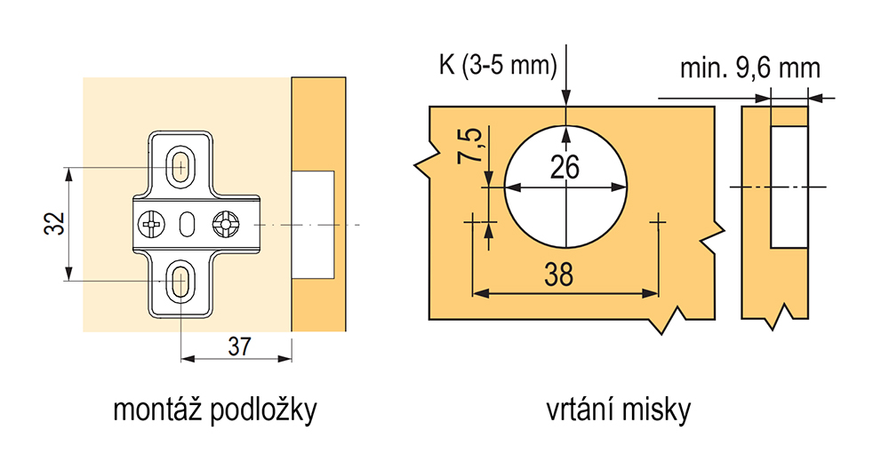 Závěs mini vložený na vrut + podložka Úhel otevření 95°