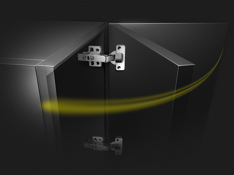 Chytrý výrobek: Závěs s inovativním řešením integrovaného tlumení pod ramínkem. Díky němu je možné použít pro tlumené, netlumené i závěsy bez pružiny (pro bezúchytkové otvírání) stejnou podložku. Není totiž nutné, aby byla podložka pro tlumený závěs upravena, jak tomu bývá u podobných řešení na trhu.