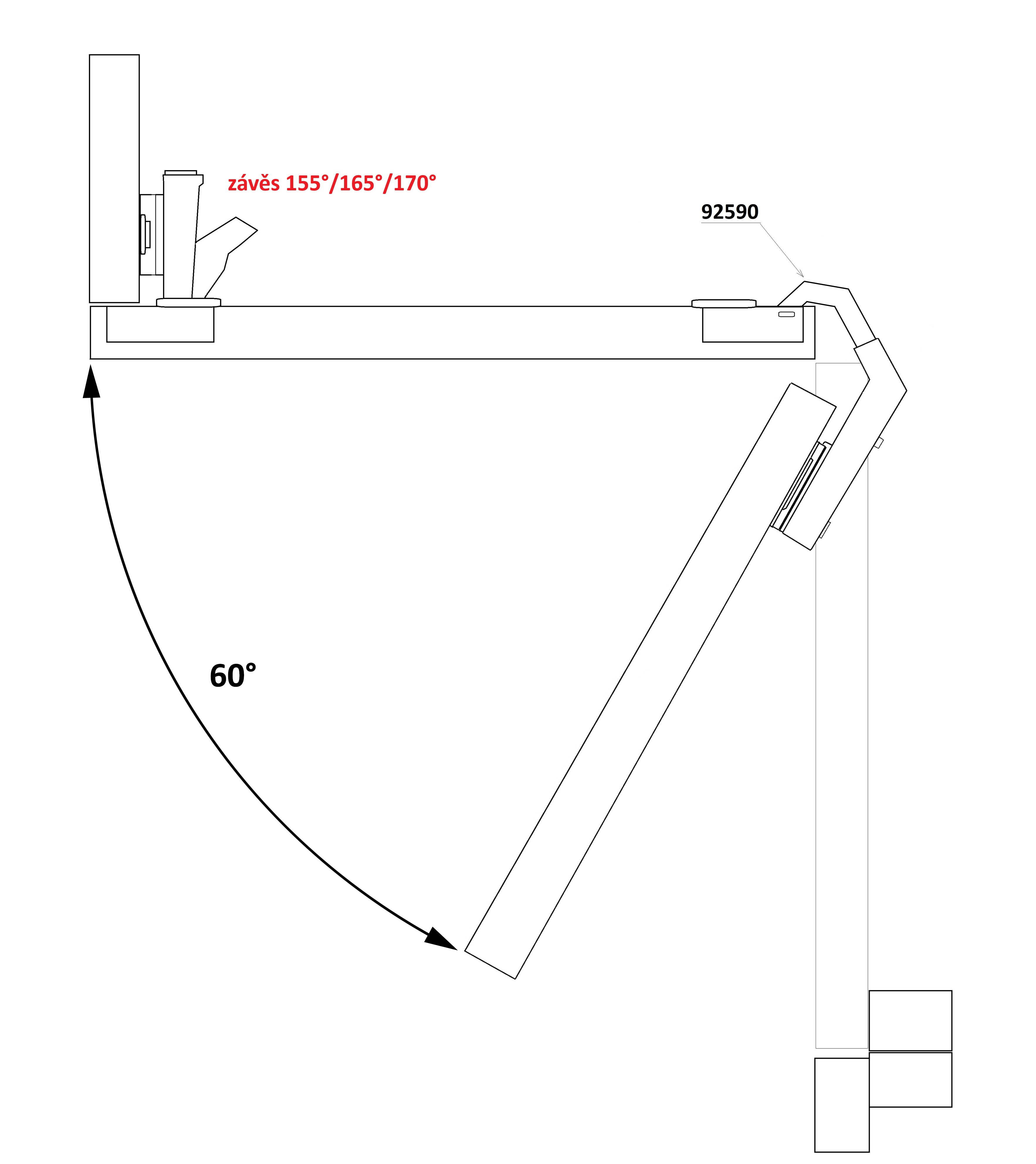 Závěs zalomený 135° na vrut. Vrtání 35/45. Úhel otevření 95°. Použití pro skládané dveře (rohové skříňky). Miska závěsu pro skládaná dvířka se montuje do stejných dveří jako miska závěsu s úhlem 165°. Doporučené podložky: H2 vrut 92598, H2 Euro 92599.