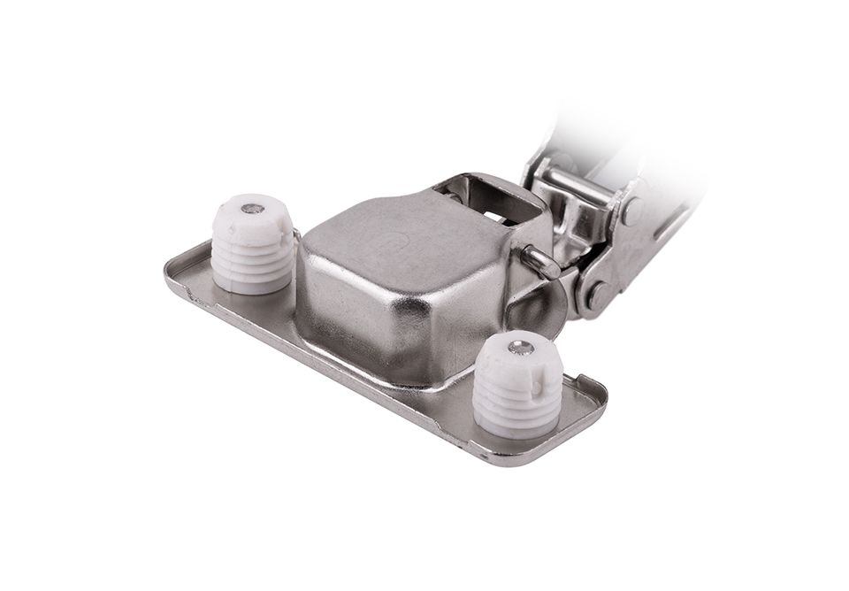 Chytrý výrobek: Závěs s inovativním řešením integrovaného tlumení pod ramínkem. Díky němu je možné použít pro tlumené, netlumené i závěsy bez pružiny (pro bezúchytkové otvírání) stejnou podložku. Není totiž nutné, aby byla podložka pro tlumený závěs upravena, jak tomu bývá u podobných řešení na trhu.