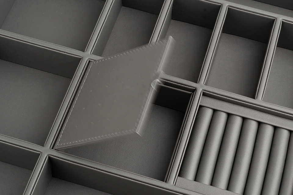 V organizéru najdete spoustu přihrádek na vaše cennosti a také krabičku s víčkem pro šperky, které chceme, aby zůstaly ukryté.