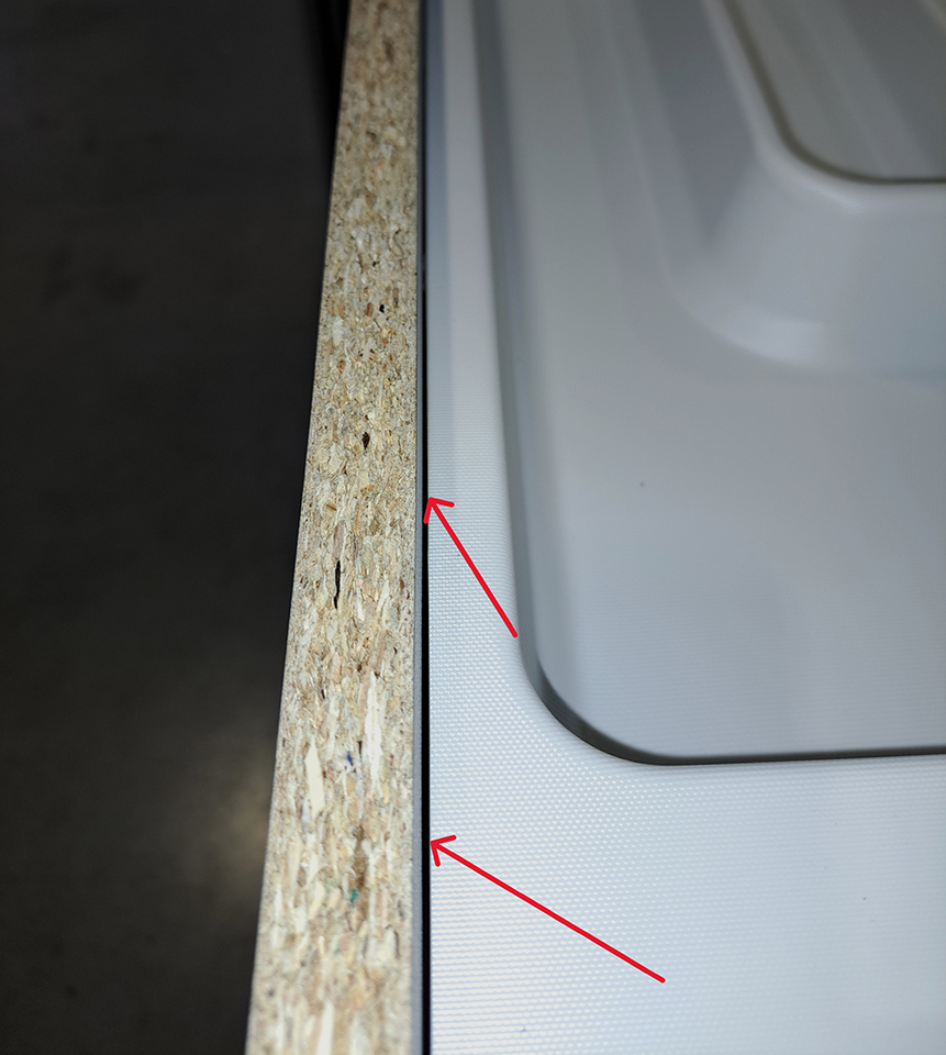 Popis poškození - na kusech se může vyskytnou křivý střih, rozměr mimo toleranci (menší než uvedený rozměr) a mírné vyosení z pravého úhlu. Možno zamaskovat krycí lištou (viz související sortiment – „Krajní profil pro příborník“), nebo úpravou rozměru. U poškozeného zboží odpovídá foto produktu skutečnosti.