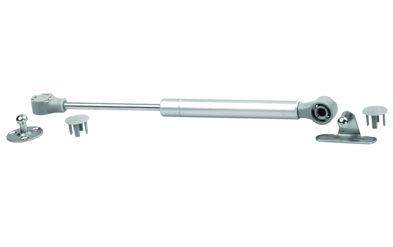 Plynová vzpěra dvířek, barva šedo-stříbrná. S funkcí polohování - píst drží otevřený v poloze, kde dvířka při otvírání pustíte.