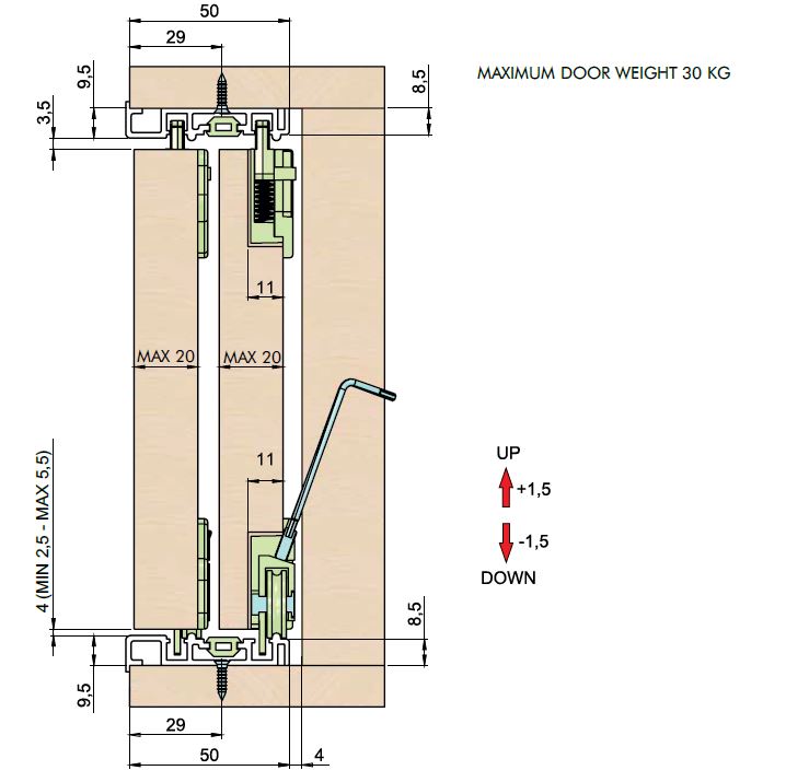 Dvojitá horní a spodní lišta k posuvnému kování Baleo. Materiál - eloxovaný hliník.