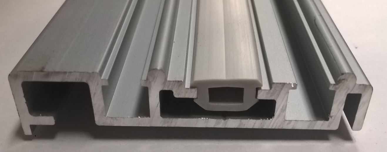Záslepka dvojitého vedení, délka 3m, materiál šedý plast. Prozatimní náhrada - DT387 TE-gumová krytka vodící lišty 3m.