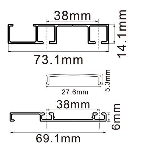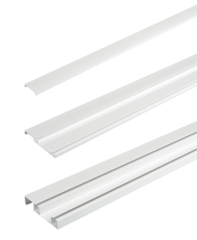 Sada horního a spodního vedení včetně krycího profilu. Délka 3m, povrchová úprava elox stříbrná.