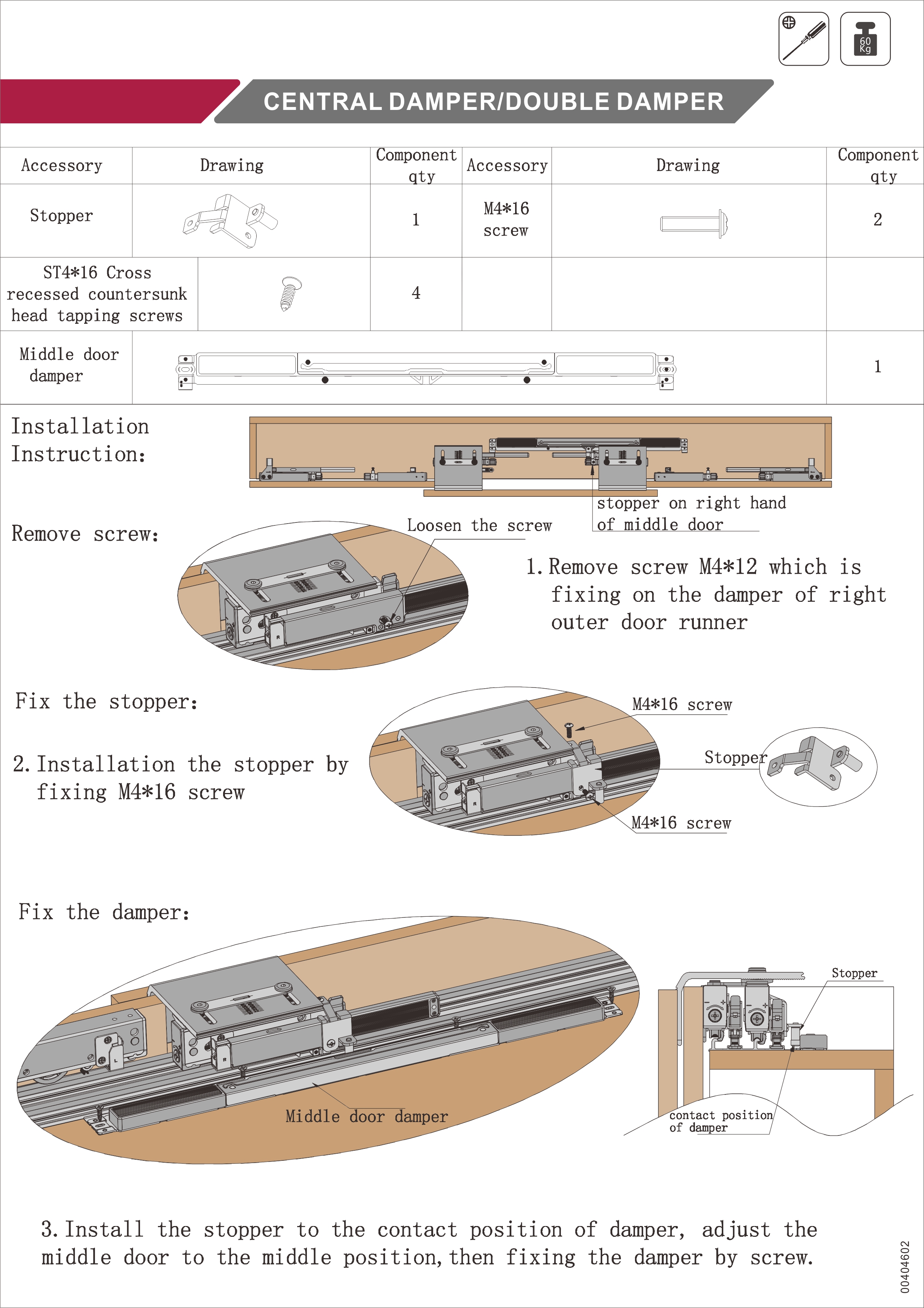 Sada antikolizního tlumení StrongLine Planio pro tříkřídlou skříň. Brání zadním křídlům, aby se při otvírání srazila.