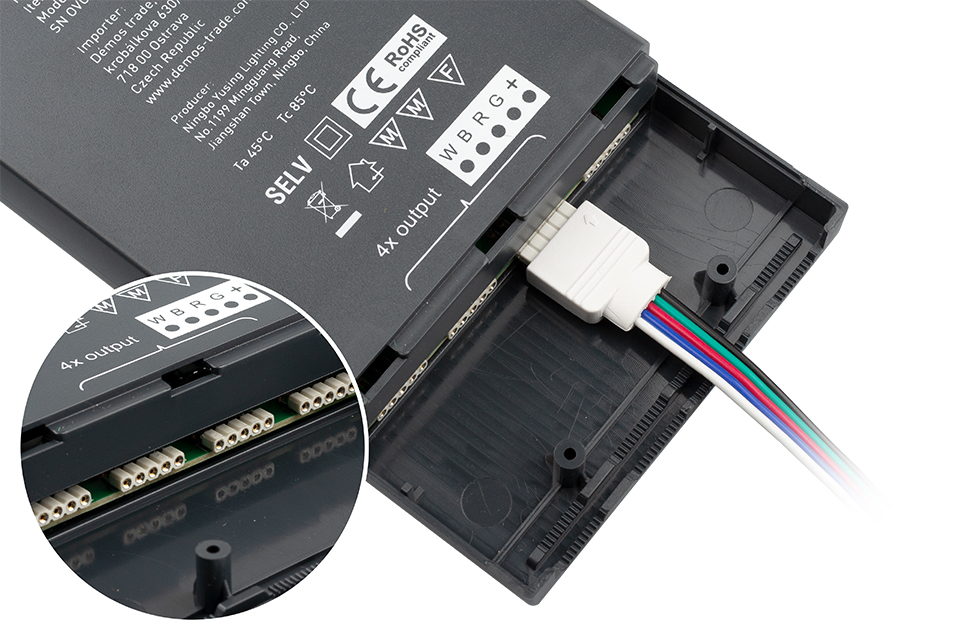 Stačí pouze zapojit do zásuvky pomocí přiloženého kabelu a z druhé strany zapojit LED pásek.