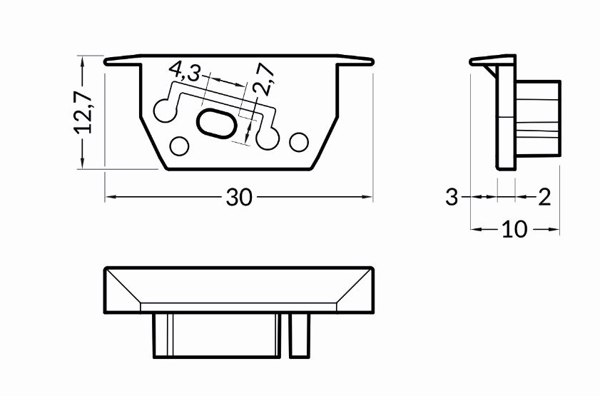 Balení: pár. Slouží k ukončení LED lišt Diagonal 14 - elox stříbrný. Délka koncovky prodlužuje délku lišty na každé straně o 3mm v horní části a o 2mm ve vyfrezované části. Materiál: plast. Barva šedá.