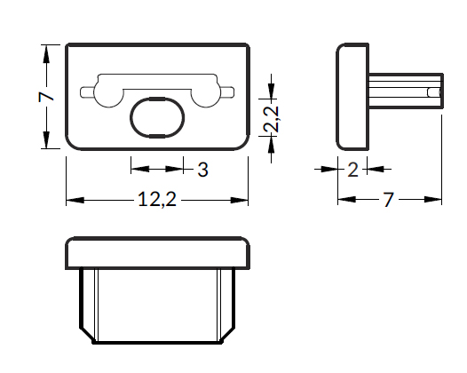 Pár koncovek k profilu Slim 8. Bez bočního otvoru. Materiál: ABS. Barva: šedá.