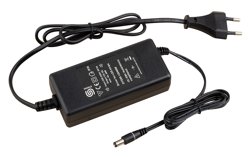 Tranformátor do zásuvky pro LED světla s rozsahem do 48 Wattu, max. proud 4 A, napětí 220-240V, výstupní napětí 12V. Délka kabelu 2 m. CE certifikát. Na výstupu je kulatý konektor. Je nutno dokoupit rozvaděč dle konektoru připojovacího kablíku, případně samostatný propojovací kabel s konektorem.