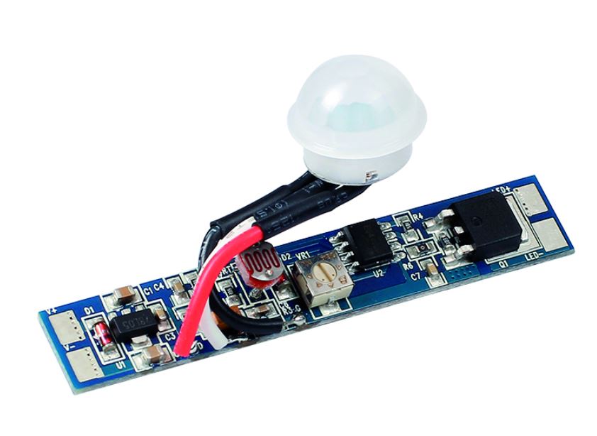 Pohybový senzor do profilu, který sepne osvětlení při registraci pohybu ve tmě (za denního světla je neaktivní) v detekční vzdálenosti (2 m - v přímém směru). Citlivost nastavitelná v rozmezí 2 – 60 luxů. Osvětlení je sepnuto po dobu 40 sekund (pokud po této době nezaznemená senzor pohyb, osvětlení vypne). Technické parametry: Napětí: 12 V/24 V. Rozměry: 10 × 57 mm v krytce otvor pro senzor 10,5 mm. Maximální proud: 8 A. Maximální spínaný výkon: 96 W (12 V), 192 W (24 V).