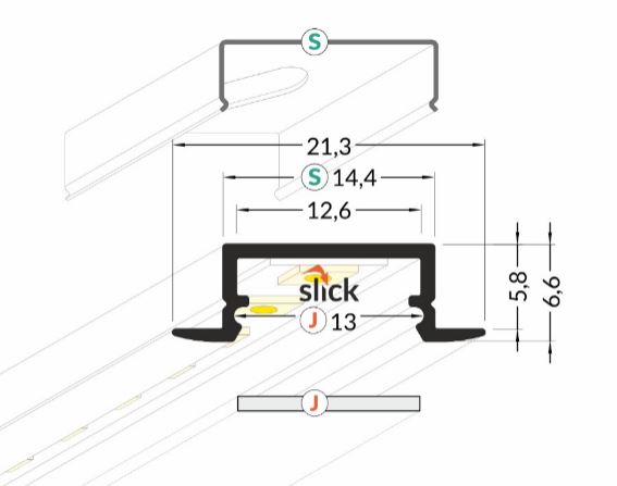 Rozměry: 3000x21,5x7mm, frézování 14,4x6 mm.