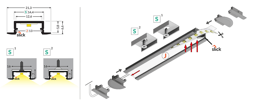 K těmto profilům jsou k dispozici krytky, které je možno instalovat shora - zaklapávací.