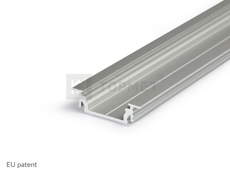 Hliníkový profil na zafrézování. Rozměry: 2000 x 28 x 8mm. Frézování 22 x 7,2mm. Povrchová úprava - elox stříbrný. Uchycení sponami, nalepením nebo pomocí vrutů. Určený pro LED pásky o max. šířce 14mm. Délka 2000mm. Krycí lišty a koncovky viz. související sortiment níže. Verze s bočním svitem - 461786 TM-profil LED Diagonal 14 alu anodovaný 2000mm