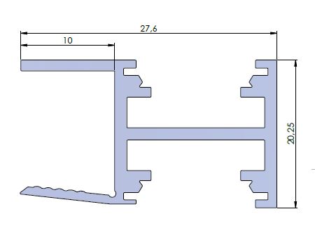 Narážecí profil na přední hranu desky. Možnost umístění LED pásků nahoru / dolů. Krycí lišty - 198517 TM-krycí lišta k LED profilům naklapávací průsvitná 2000mm a 221008 TM-krycí lišta k LED profilům naklapávací mléčná 2000mm.