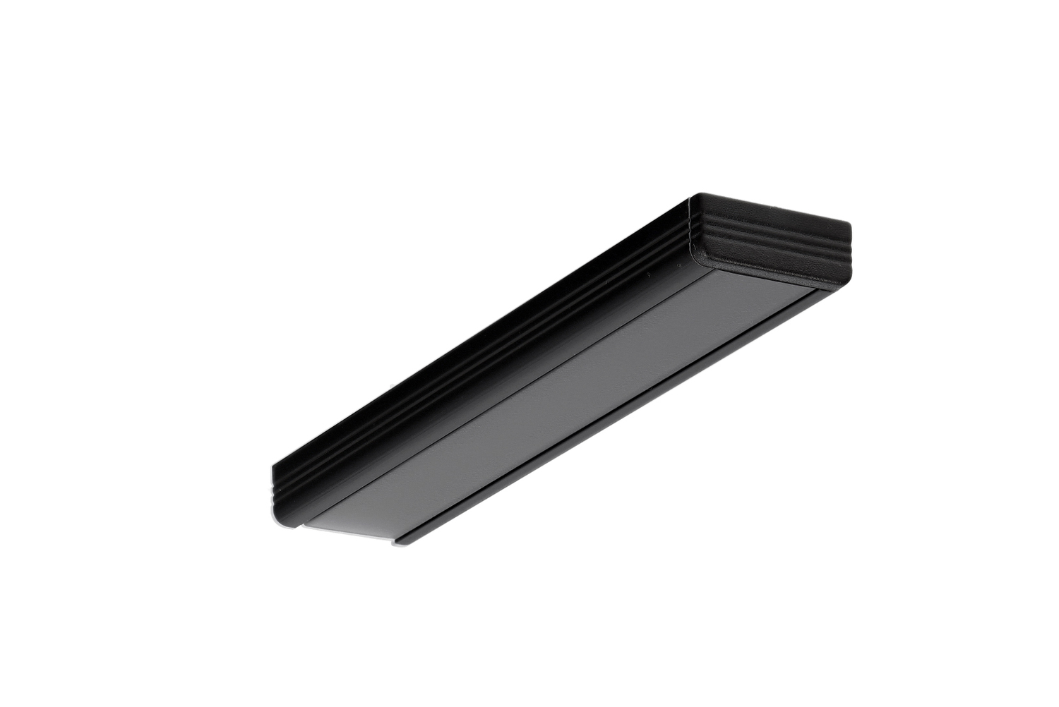 Hliníkový profil k povrchové montáži. Povrchová úprava - elox černý. Uchycení sponami, nalepením nebo pomocí vrutů. Určený pro LED pásky o max. šířce 10mm. Délka 1000mm. Krycí lišty a koncovky viz. Související sortiment níže.