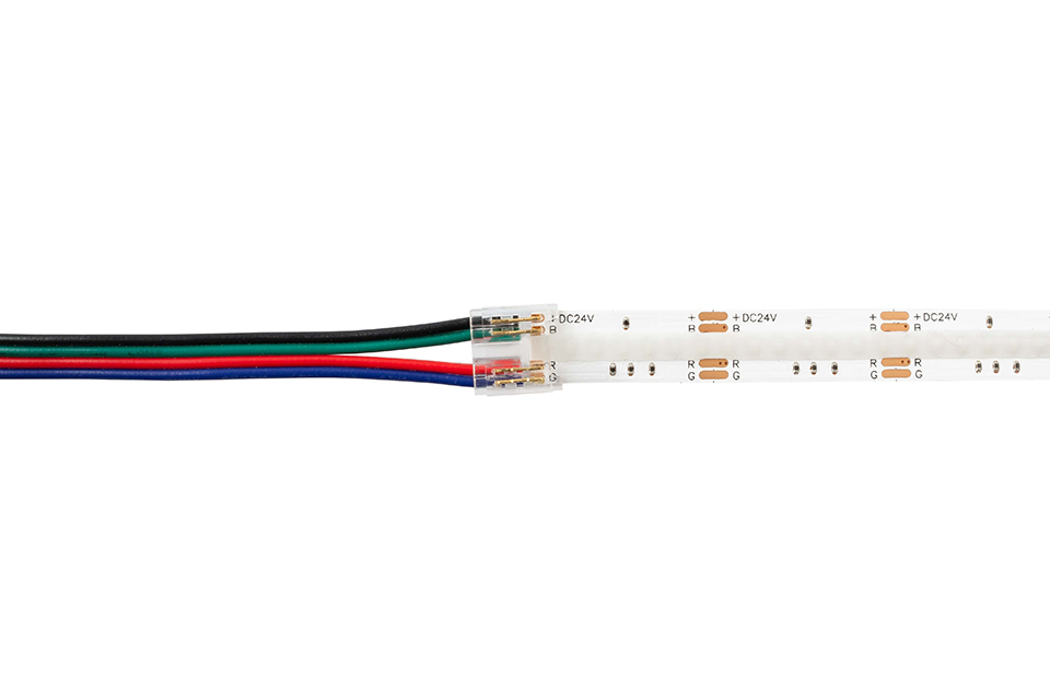 Spojka pro spojení CCT/RGB COB LED pásek - kabel (trojlinka/čtyřlinka). Vhodné pro LED pásky šířky 10mm viz. Související sortiment. Spojka se na LED pásek nasadí a pomocí kleští se přitlačí kontaktní trny do LED pásku, kdy se trny poté do LED pásku zaříznou. Spojka je tedy určena pro jedno použití. Pro použití v profilech o min. šířce 12mm a výšce 5,1mm.
