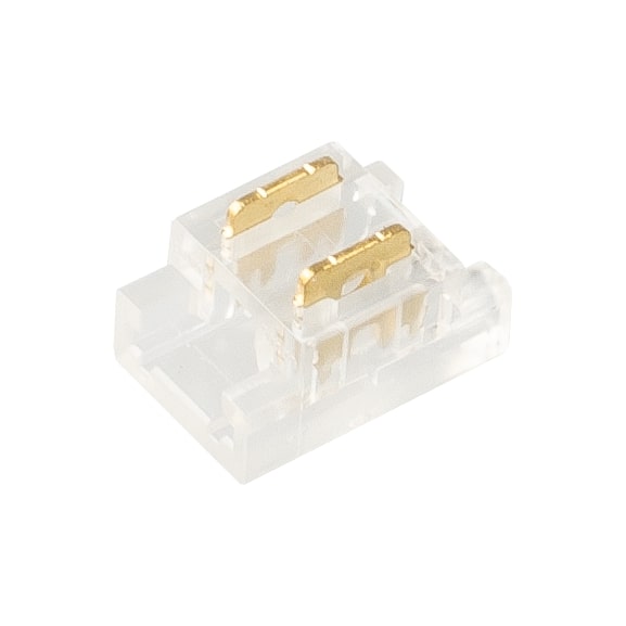 Spojka pro spojení COB LED pásek - LED pásek. Vhodné pro LED pásky šířky 5mm viz. Související sortiment. Spojka se na LED pásek nasadí a pomocí kleští se přitlačí kontaktní trny do LED pásku, kdy se trny poté do LED pásku zaříznou. Spojka je tedy určena pro jedno použití. Pro použití v profilech o min. šířce 7mm a výšce 5,1mm.