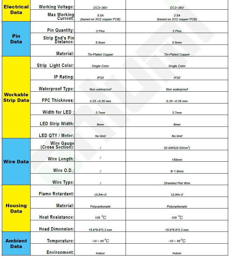 StrongLumio spojka LED pásek jednobarevný 8mm - kabel 2-linka 150mm