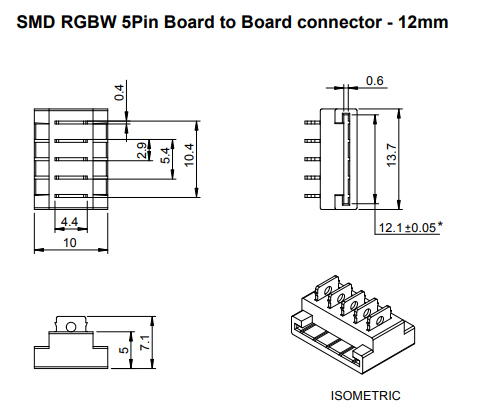 Spojka pro spojení RGBW LED pásek - LED pásek. Vhodné pro LED pásky šířky 12mm viz. Související sortiment. Spojka se na LED pásek nasadí a pomocí kleští se přitlačí kontaktní trny do LED pásku, kdy se trny poté do LED pásku zaříznou. Spojka je tedy určena pro jedno použití. Pro použití v profilech o min. šířce 14mm a výšce 5,1mm.