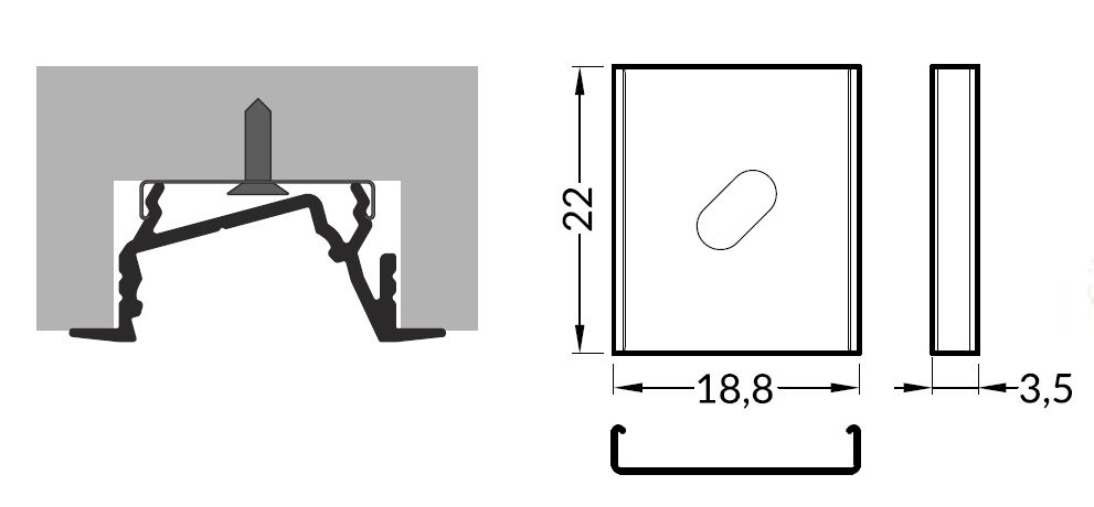 Balení: pár včetně vrutů. Materiál: nerezová ocel. Použití: 1 - 2 páry/1m lišty.