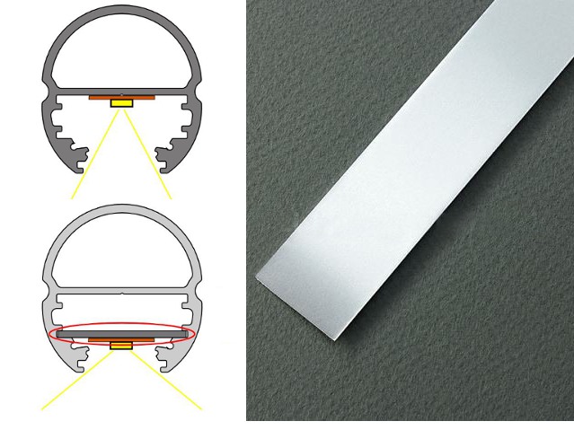 Slouží k umístění LED pásku blíže ke krycí liště a tím i k rozšíření úhlu svitu.